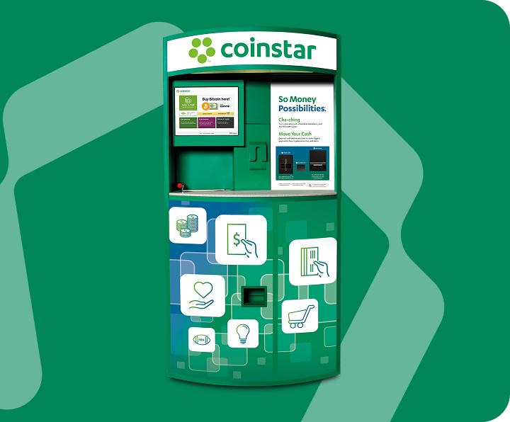 Convert coins and cash into digital dollars, or cash into crypto, at your nearest Coinstar® kiosk. With thousands of enabled kiosks across America, it’s never been easier to get full value from the money in your pocket.